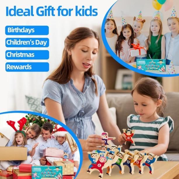 Wooden balancing toys for kids are Crafted from high quality, durable wood, ensuring longevity and safe play for children. stack and balance human tower has Vibrant clown figures add a playful and engaging element, capturing children's imagination and interest. clown balance toy game canEnhances hand-eye coordination, fine motor skills, and critical thinking through stacking and balancing challenges. hercules human balancing Perfect for solo play or group activities, promoting social interaction and cooperative play among children. Package include----Stack & Balance Human Tower | Wooden Interlocking Toy Set | Promotes Critical Thinking & Creativity | Early Learning Educational Game for Kids Children Boys Girls